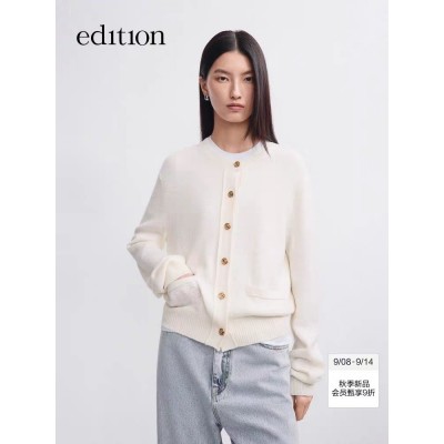edition针织开衫女2025秋季新款小香风羊毛针织衫外套EBE3CAR006